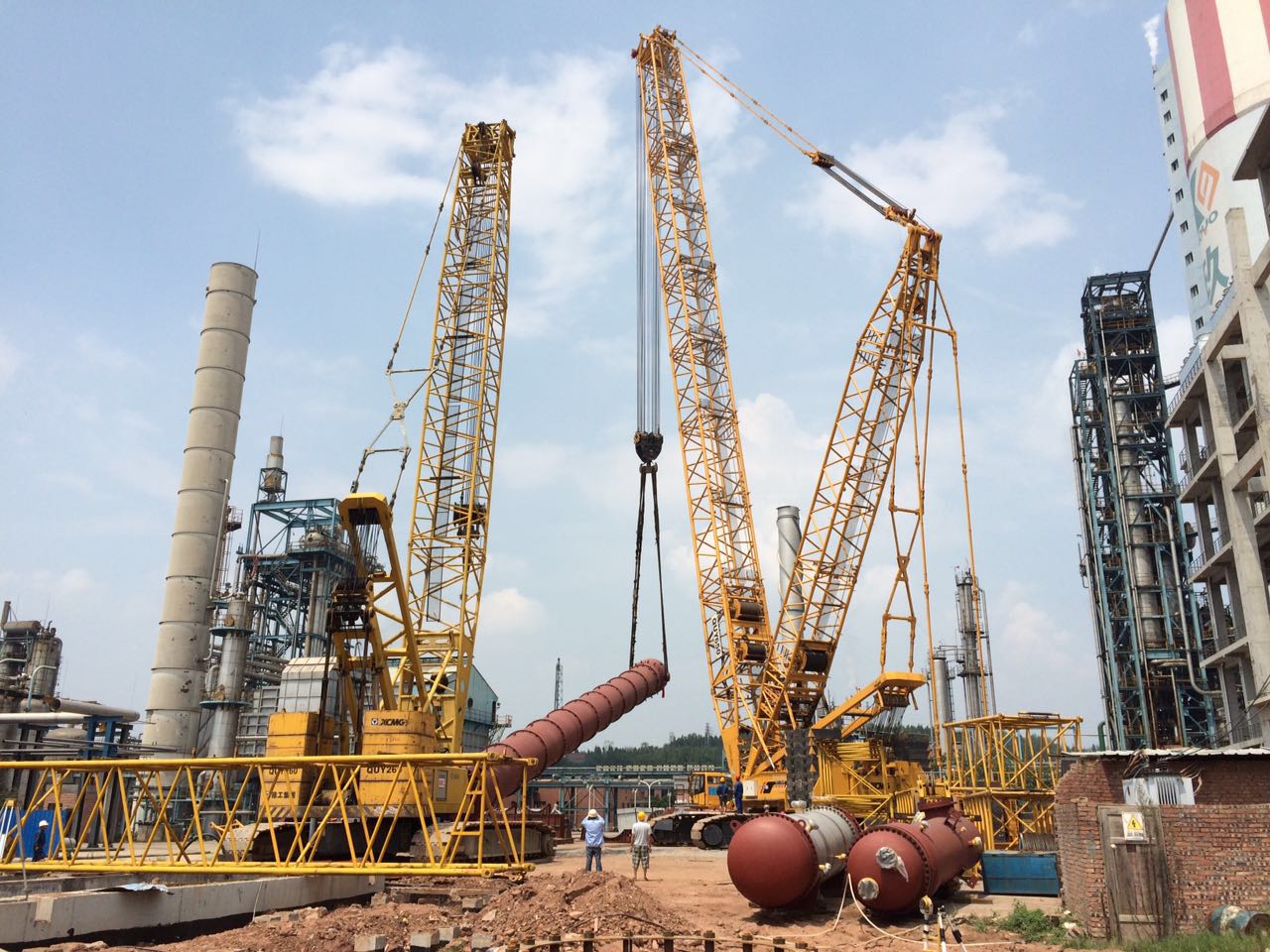 公司擁有大型吊裝設備履帶式起重機六十余臺,吊裝能力50T-1000T